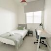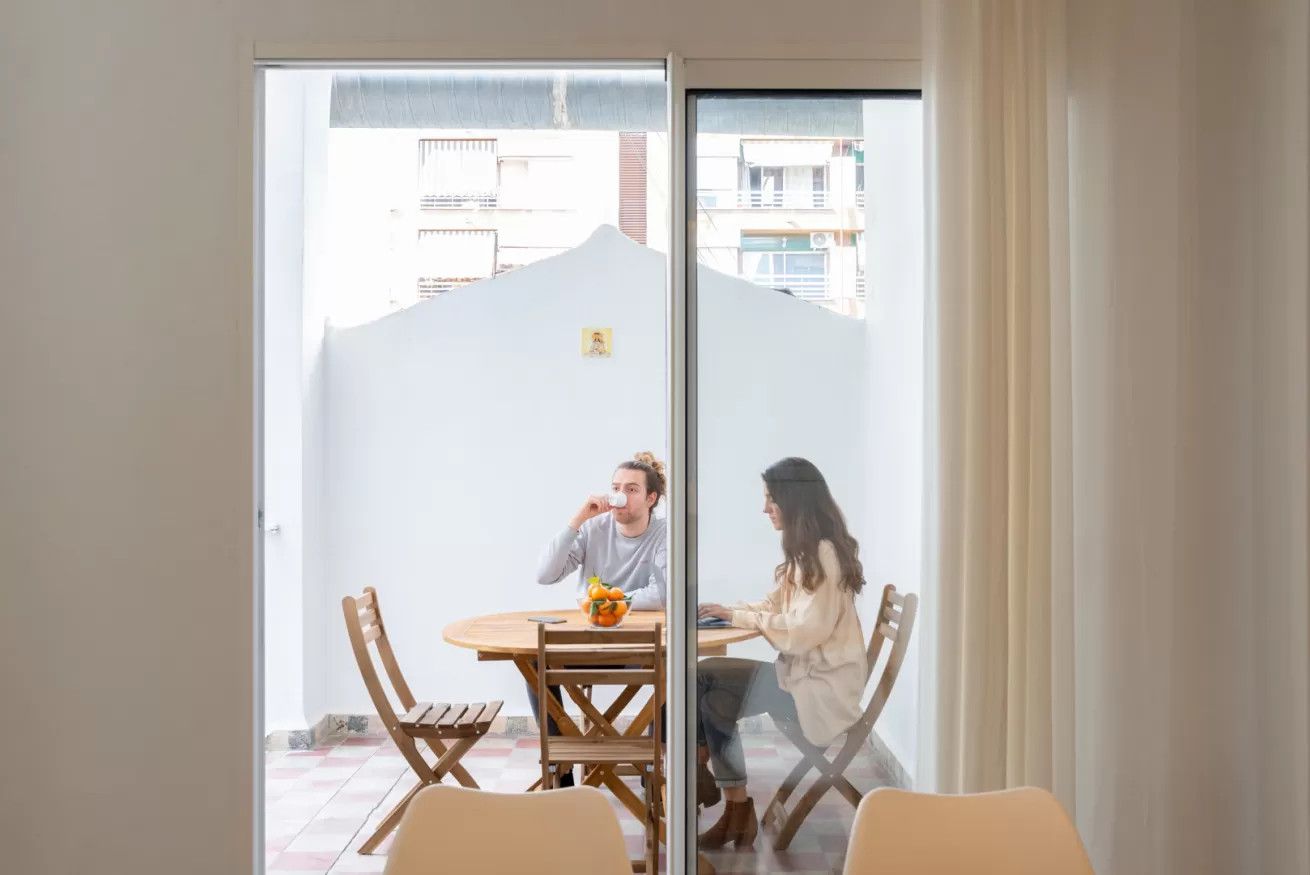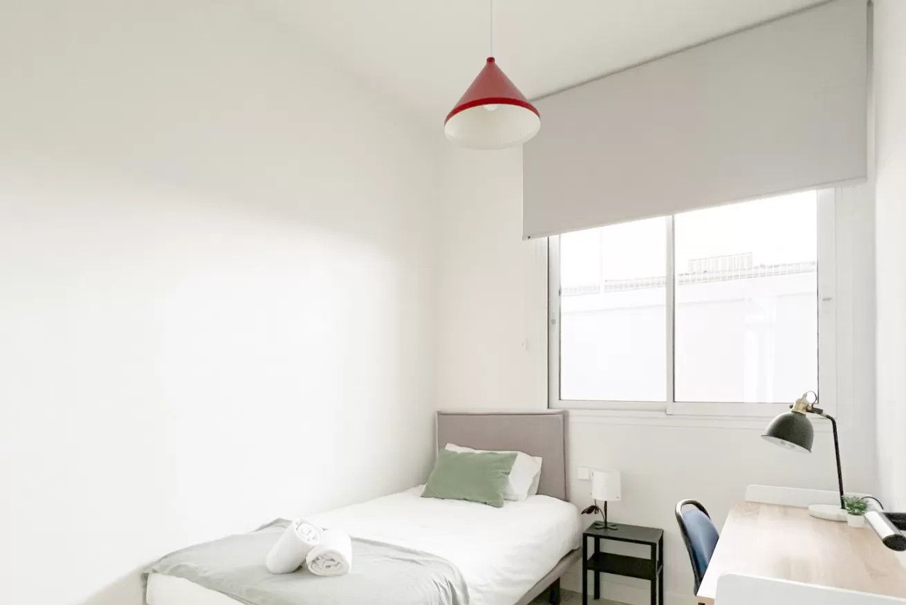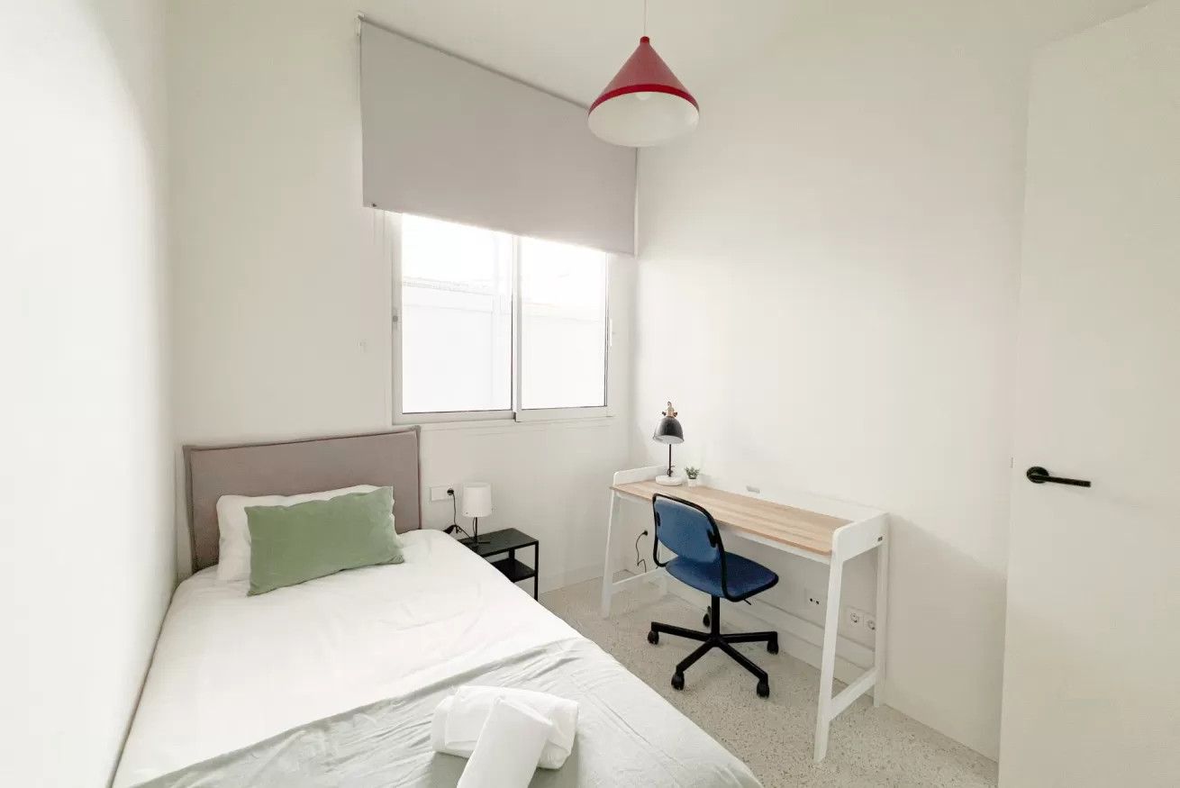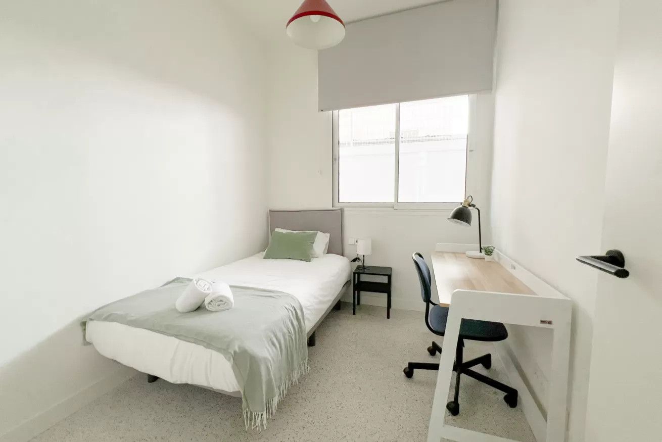 Todas las habitaciones tienen una cama cómoda, mesilla de noche, escritorio, silla y lámpara para trabajar y un armario para guardar la ropa. Compartirás con otros colivers un salón-comedor, una cocina americana y un cuarto de baño con ducha y acceso a una pequeña galería donde se encuentra la lavadora. El piso está totalmente equipado con televisión, aire acondicionado, calefacción central, Wi-Fi rápido, frigorífico, lavadora, congelador, horno, microondas, tostadora, cafetera y hervidor de agua.